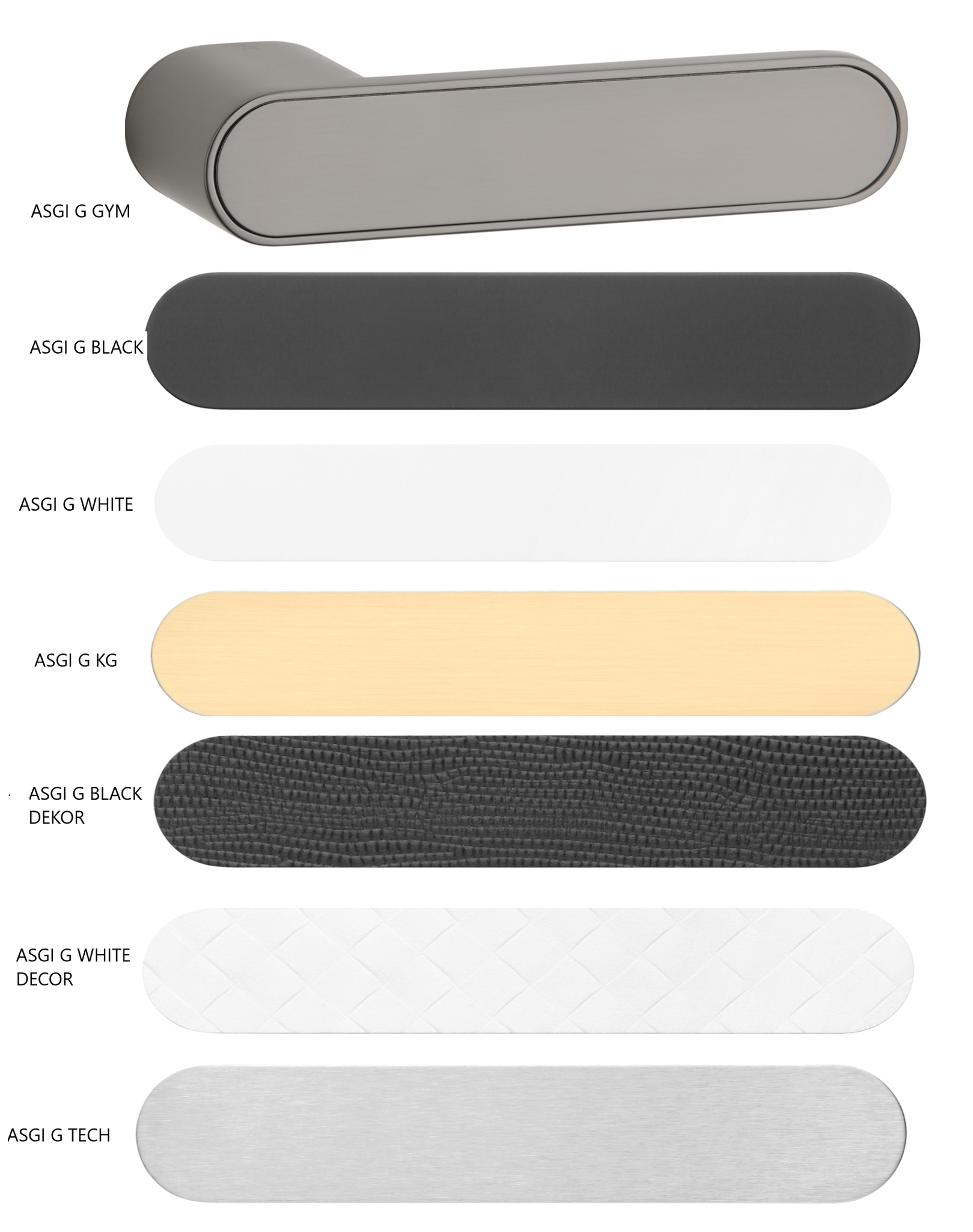 Beschrijving Massieve grafietkleurige design deurklinken GUAVA met ultra dunne geveerde onderrozetten en verwisselbare afdekplaten