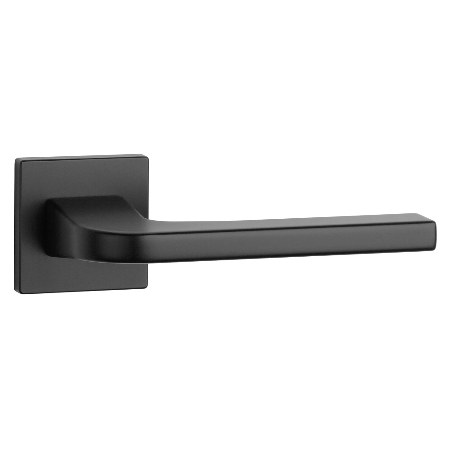 Beschrijving Massieve zwarte deurklinken Ismena op vierkant rozetten van 52x52x7mm van Aprille