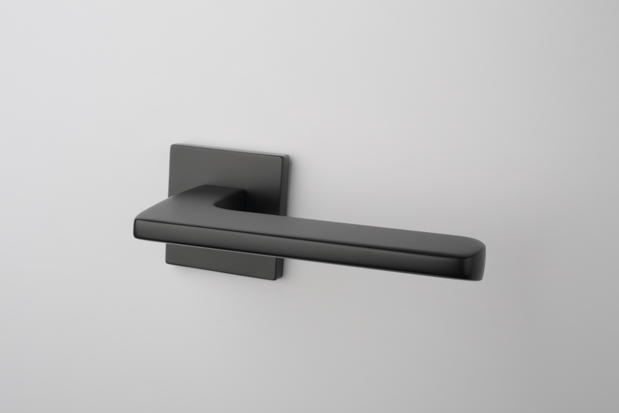 Beschrijving Massieve zwarte deurklinken Yuka op vierkant rozetten van 52x52x7mm van Aprille