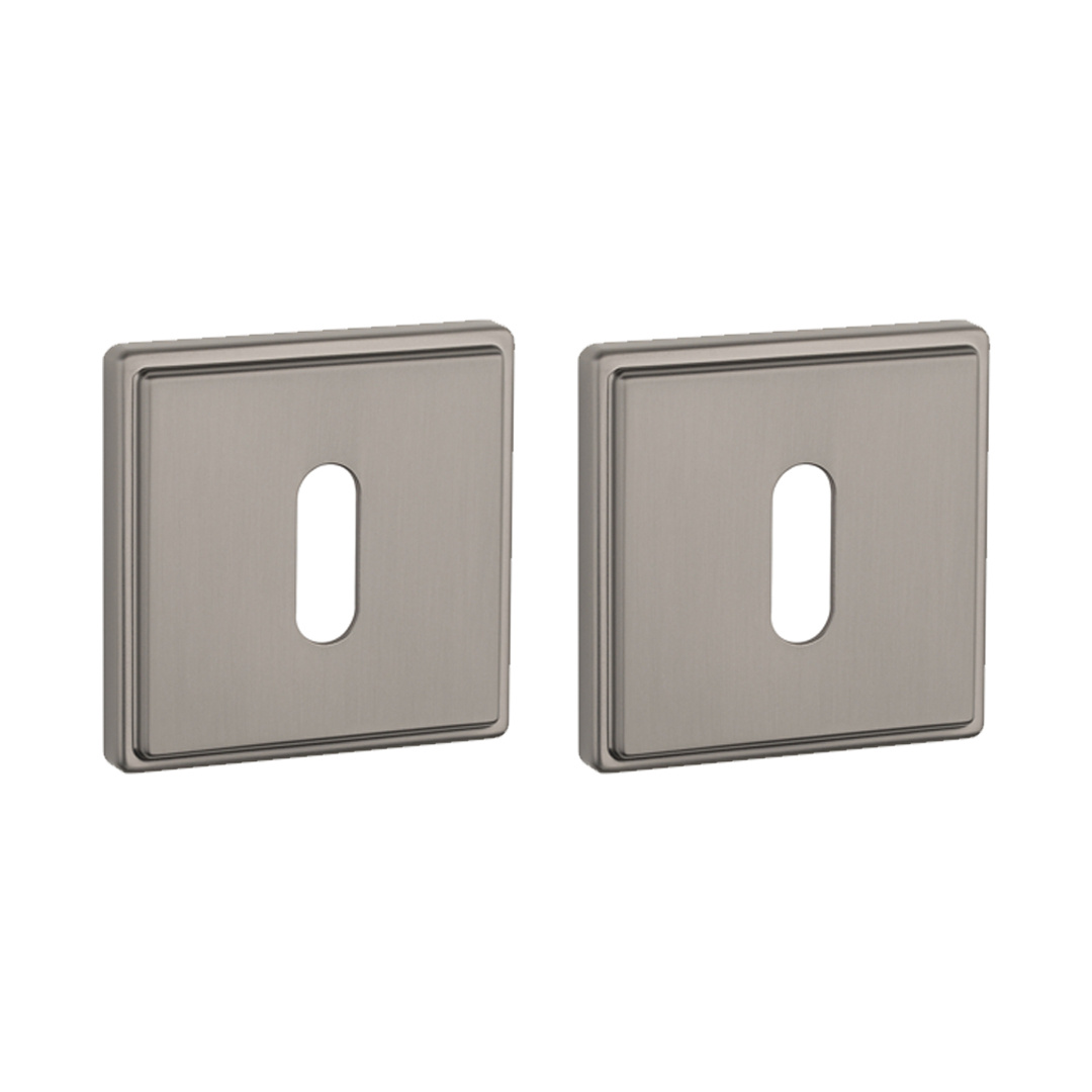 De APRILE sleutelplaatjes met vierkante geribbelde rozet uit de Premium collectie geven deuren een moderne en karaktervolle uitstraling. De combinatie van de strakke vierkante vorm en de fijne ribbelstructuur zorgt voor een uniek en stijlvol accent.