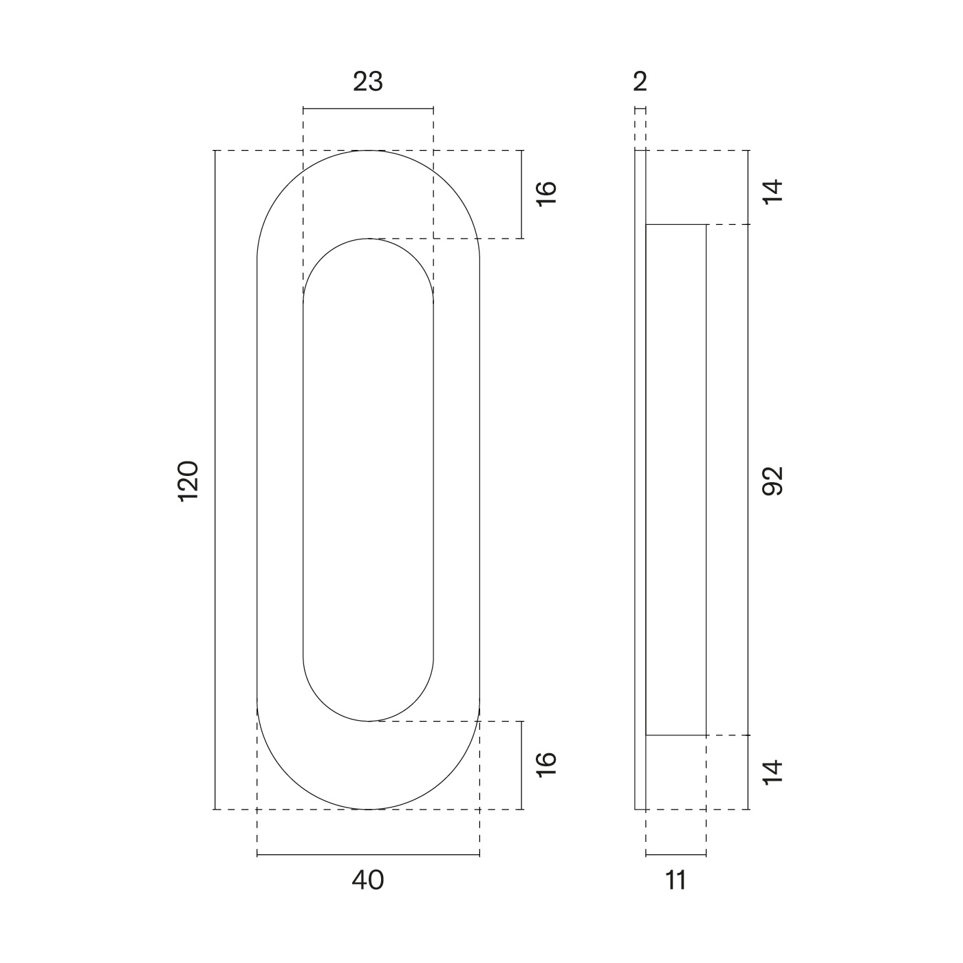 Beschrijving Ovale schuifdeurkom 1717 - van 120 x 40 mm voor houten schuifdeuren uitgevoerd in mat basalt grey PVD coating