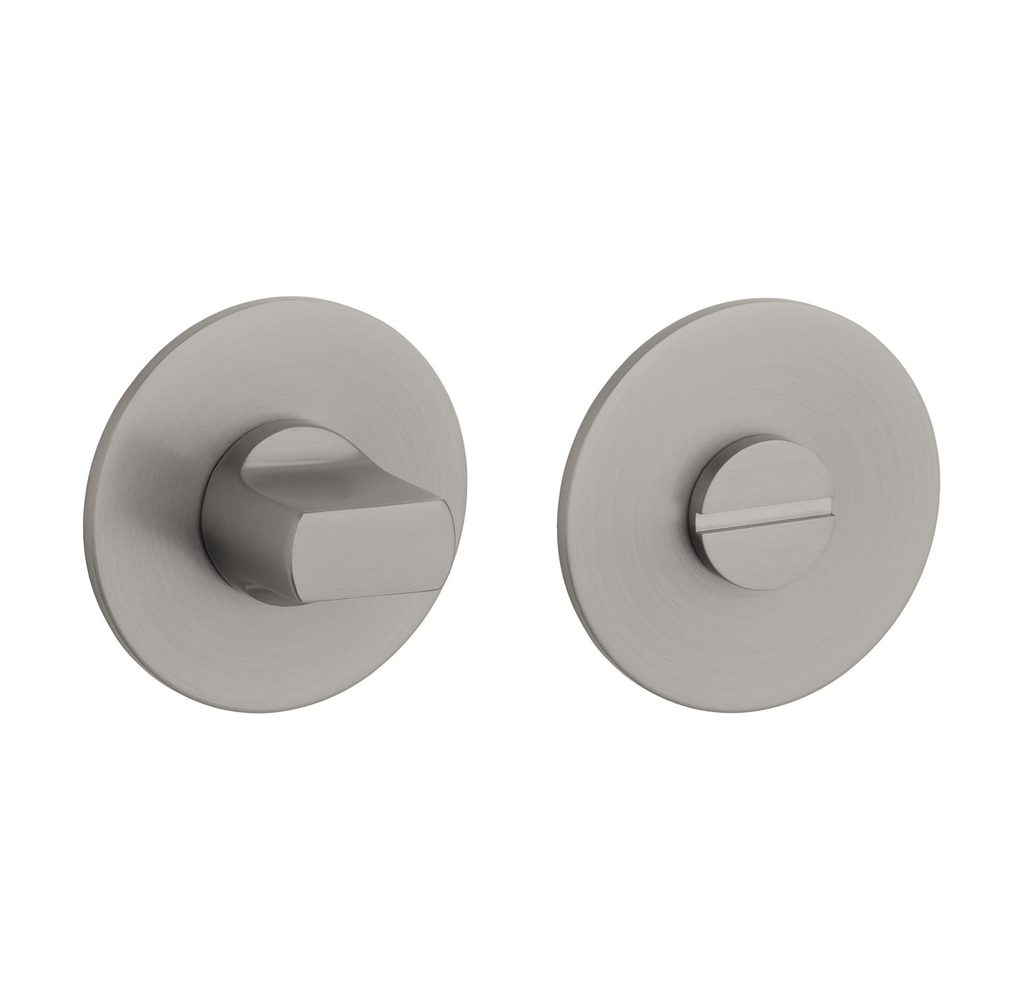 Beschrijving Rond WC garnituur OVAL 1712 dat slecht 3 mm dik is met een diameter van 54,5 mm uitgevoerd in basalt grey PVD coating