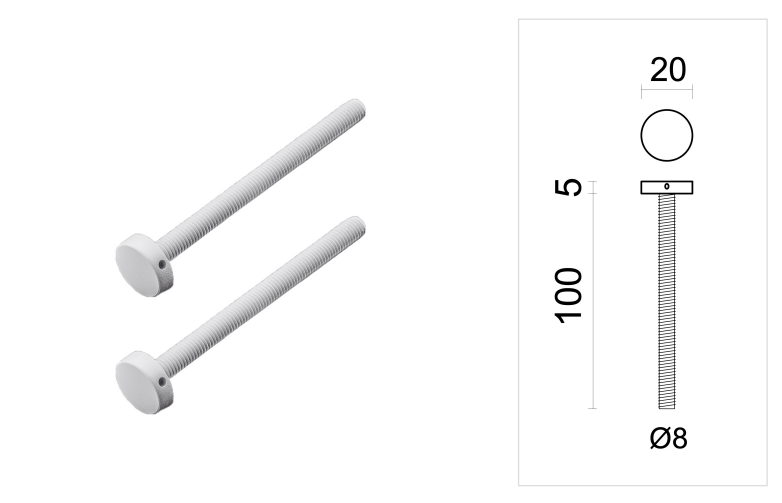 Beschrijving Bevestigingsset M8 trekker buitendeur rond 20mm lengte 100mm wit structuur