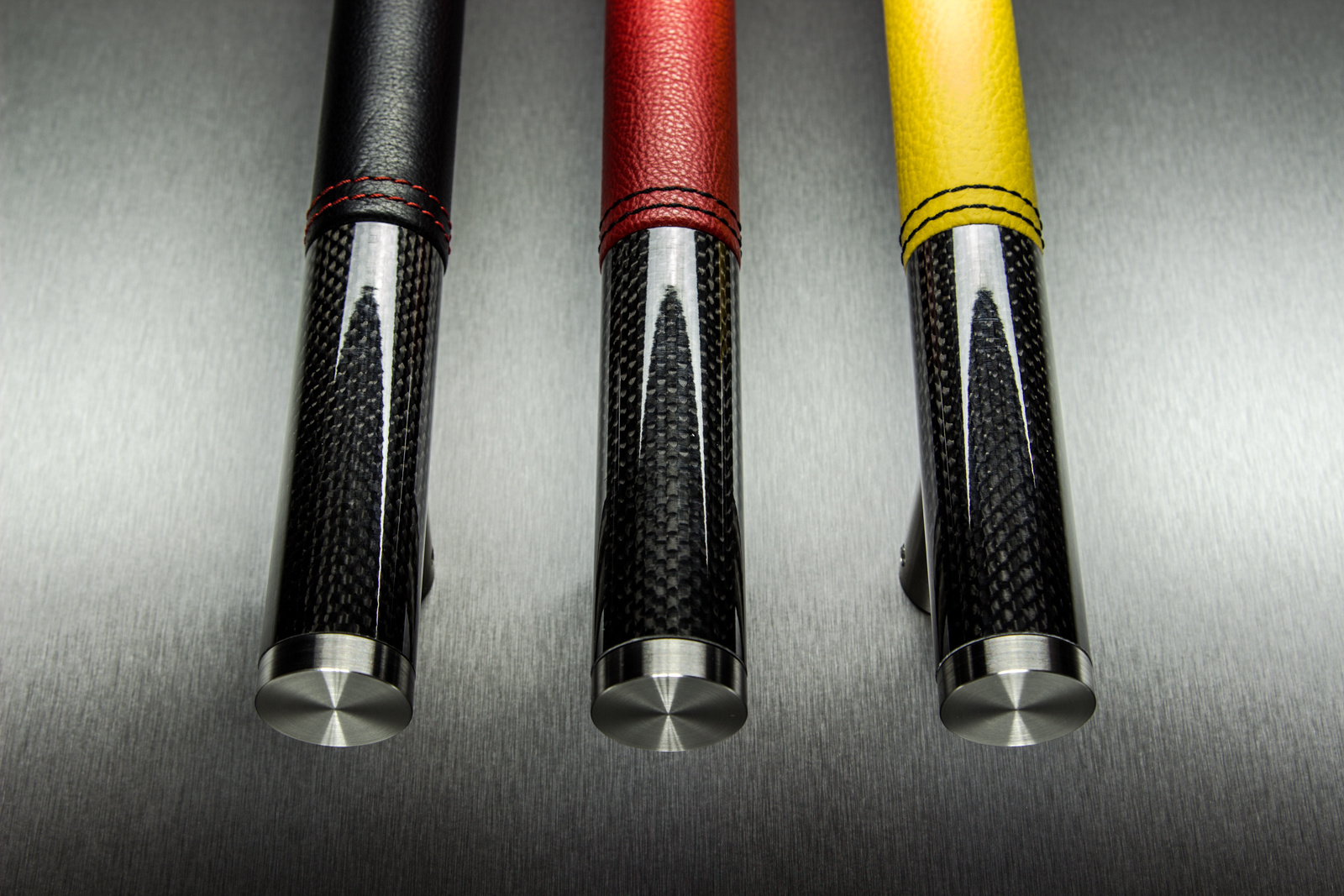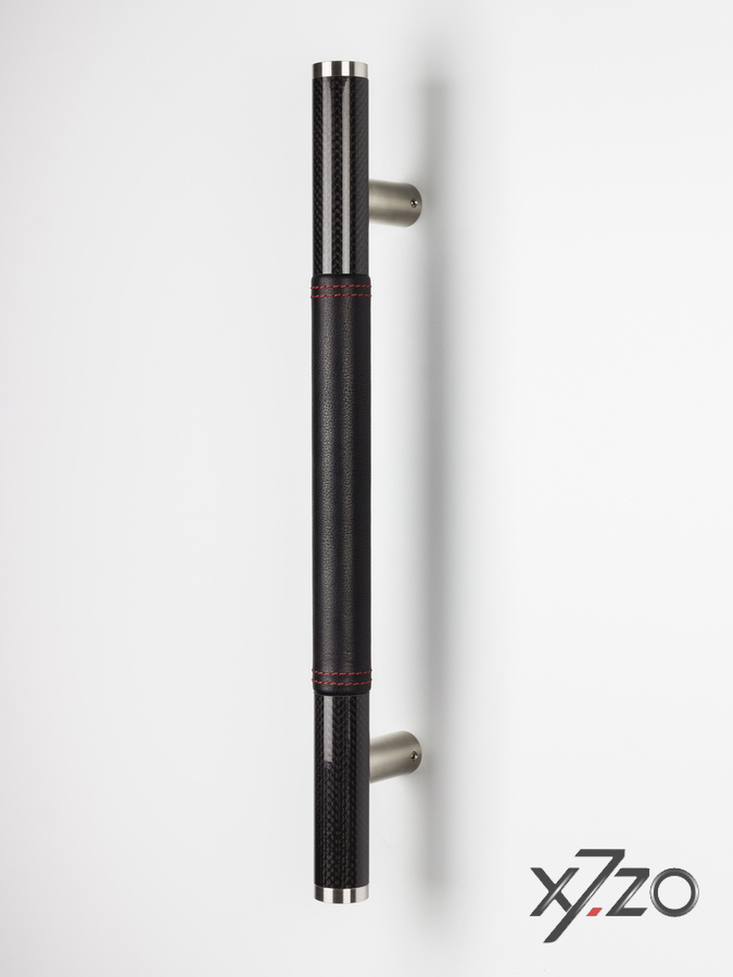 De moderne deurgreep is vervaardigt uit RVS gecombineerd met Carbon. De voeten en eindstukken van de deurgreep zijn gemaakt uit RVS. De deurgreep zelf wordt afgewerkt met een hoes van zwart Italiaans leer dat men met de hand afnaait met een rode draad. Over het Carbon zit een glazen bescherming.