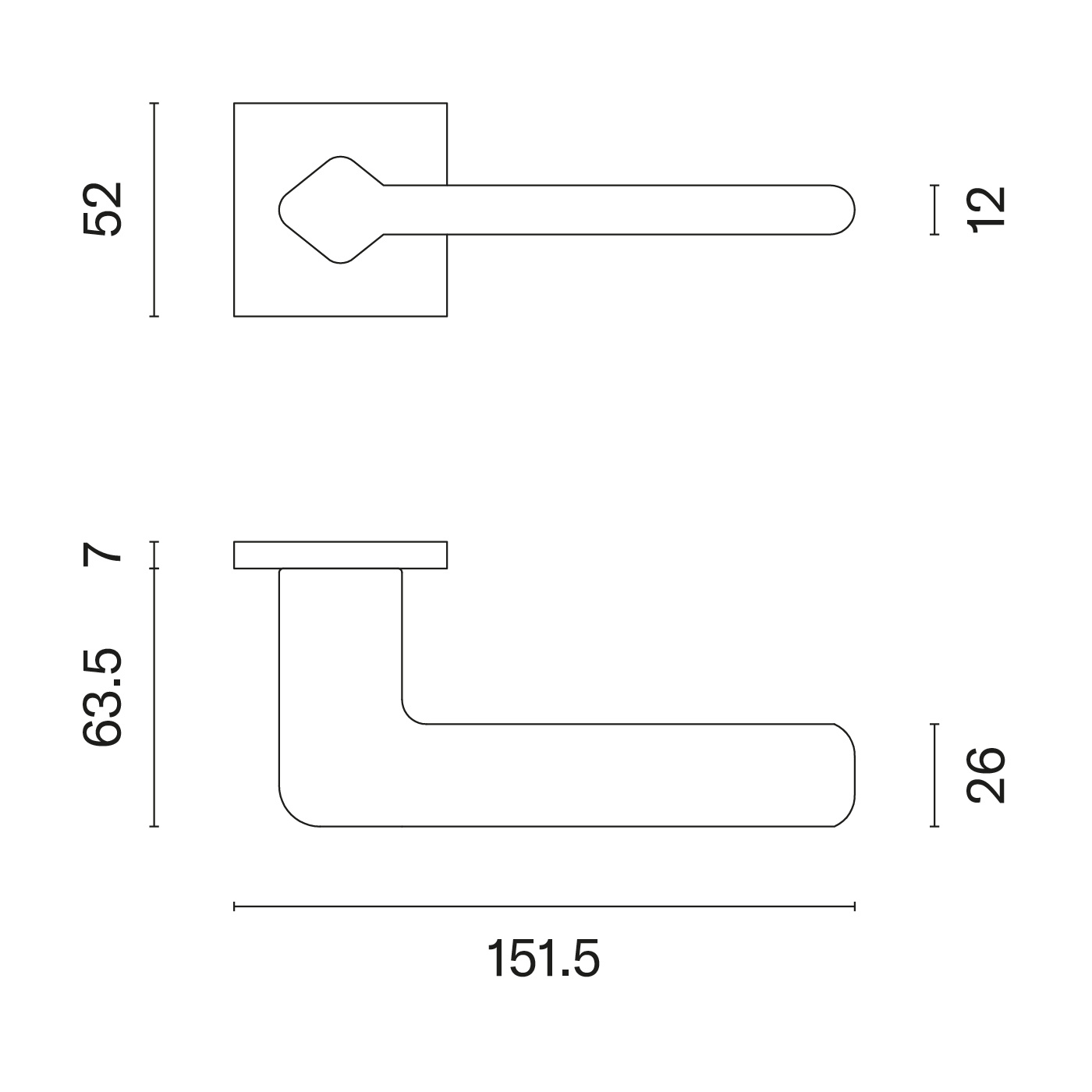 Beschrijving Massieve deurklinken Lila in Chroom Satiné op vierkant rozetten 52x52x7mm van Aprille