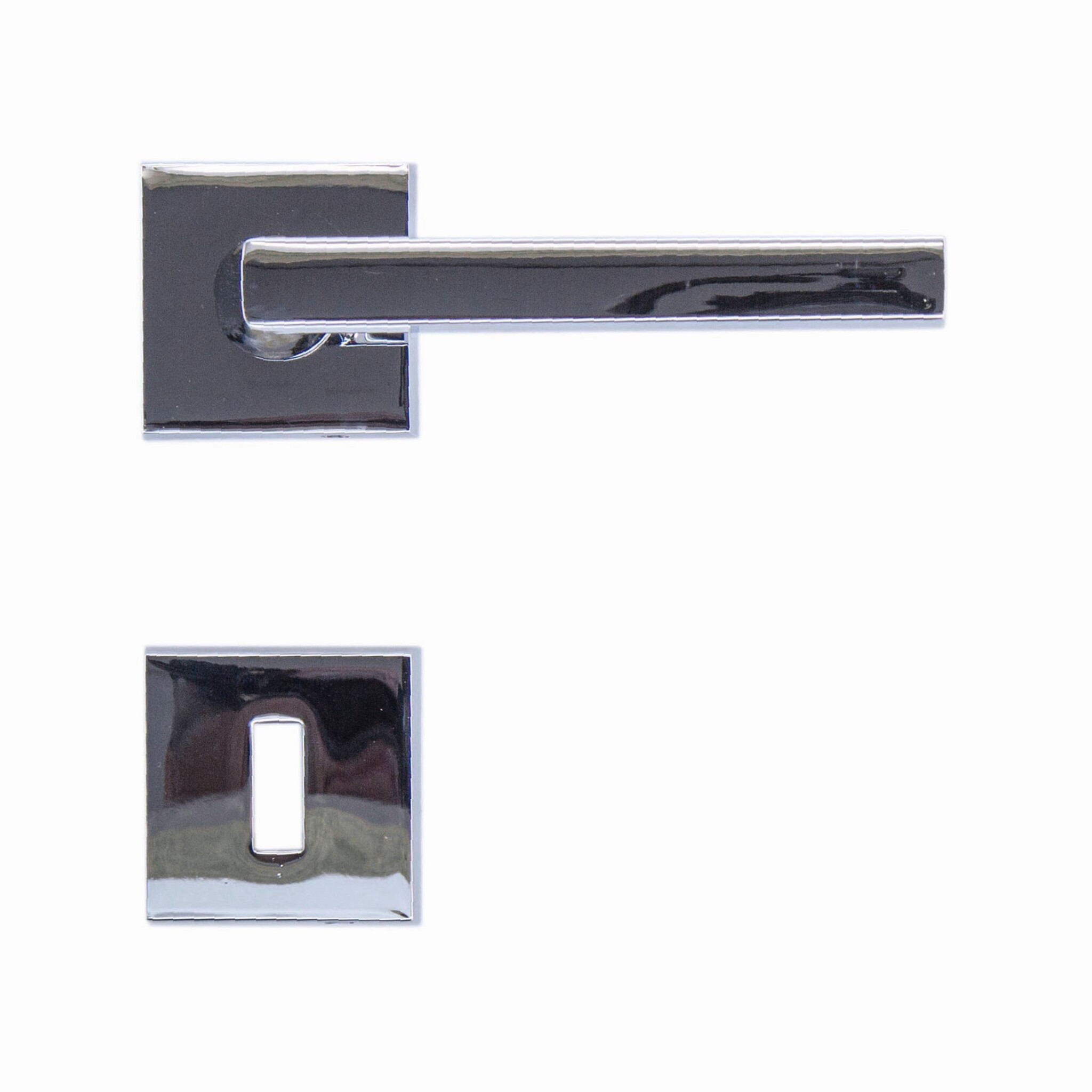 Deze Chrome deurklinken staan op een vierkant rozet van 48X48X10 en zijn zeer mooi afgewerkt met strakke lijnen.