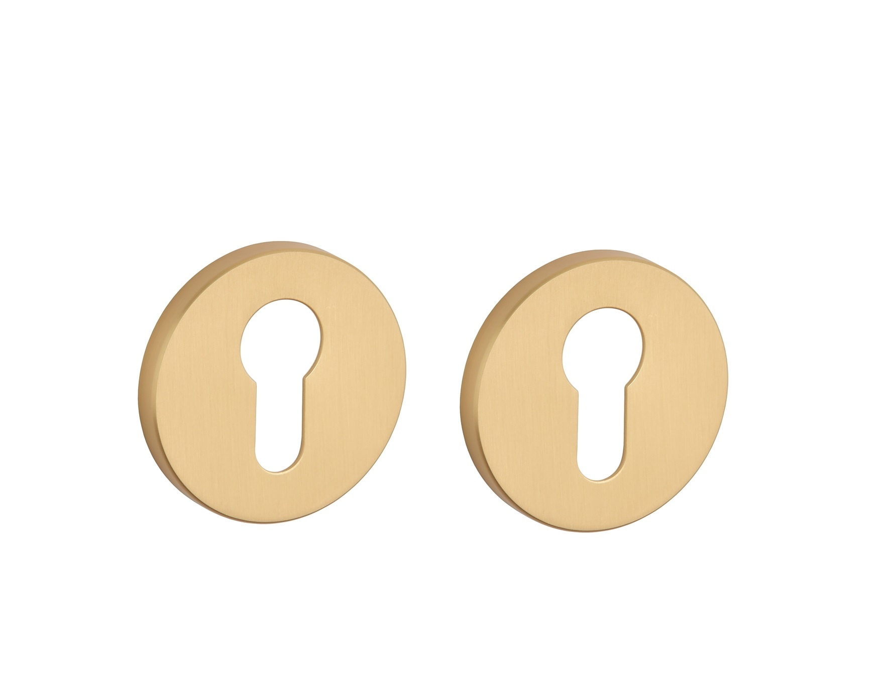 Deze mat gouden ronde cilinderrozetten hebben een Ø 52mm en slechts een dikte van 7mm zodat ze er esthetisch aantrekkelijk uitzien op de deuren.
