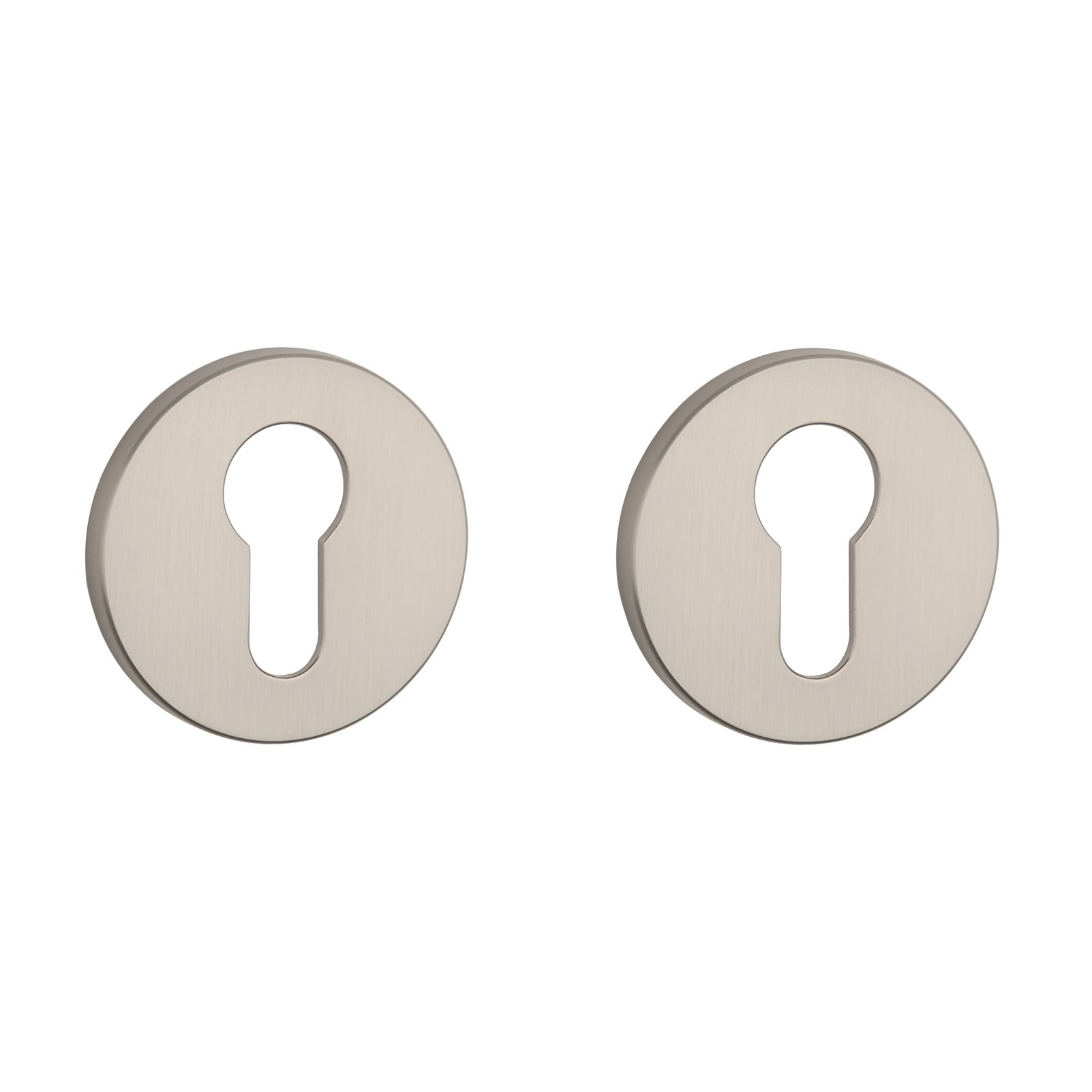 De mat Nikkelen ronde cilinderrozetten hebben een Ø 52mm en slechts een dikte van 5mm zodat ze er esthetisch nog aantrekkelijker uitzien op de deuren.