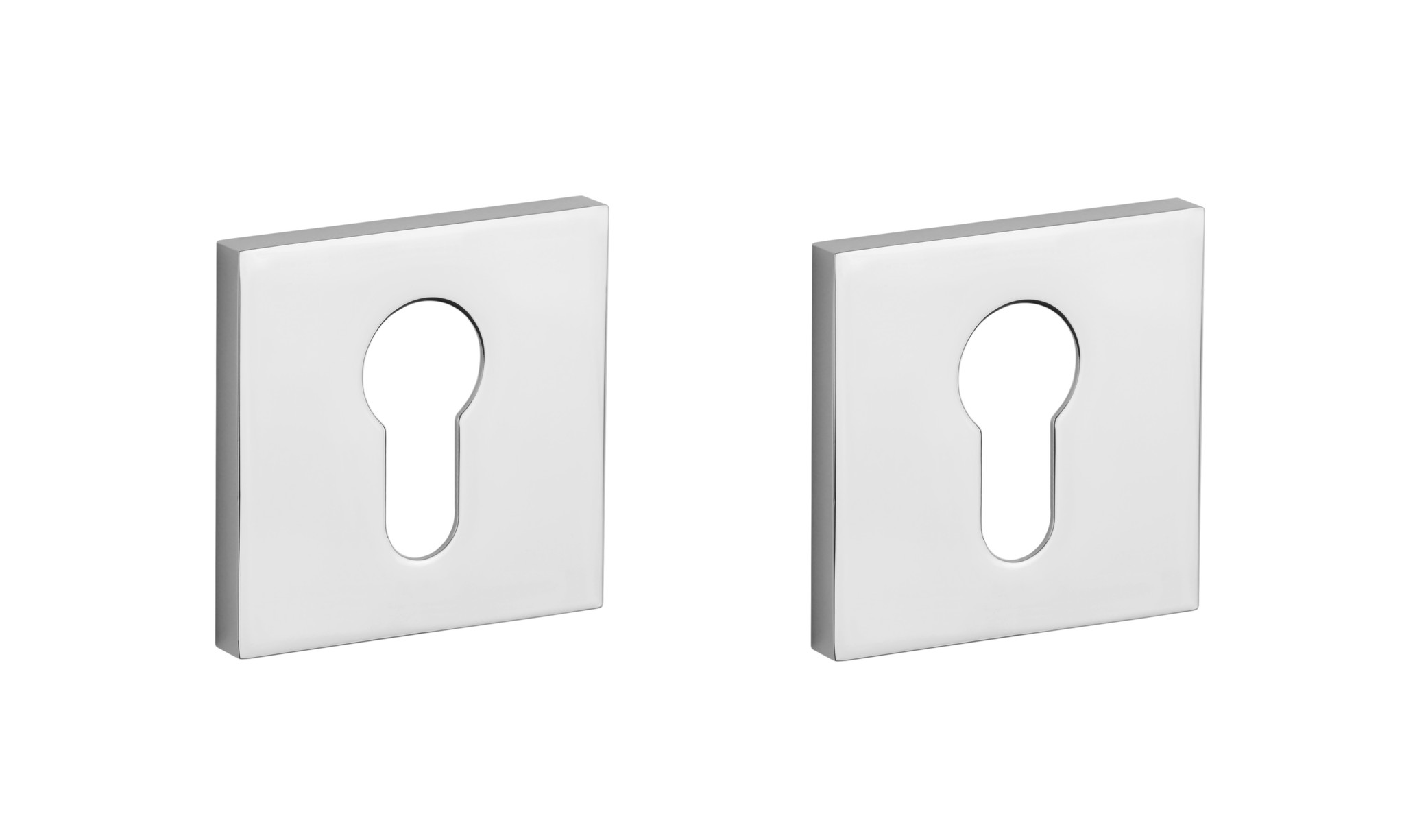 Deze Chroom gepolijste vierkante cilinderrozetten hebben een Ø 52x52mm en slechts een dikte van 7mm zodat ze er esthetisch aantrekkelijk uitzien op de deuren.