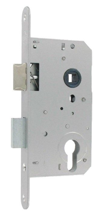 Beschrijving Dag -en nacht cilinderslot in inox look - asmaat 72mm - doorn 50mm met afgeronde voorplaat 205x22mm inclusief sluitplaat
