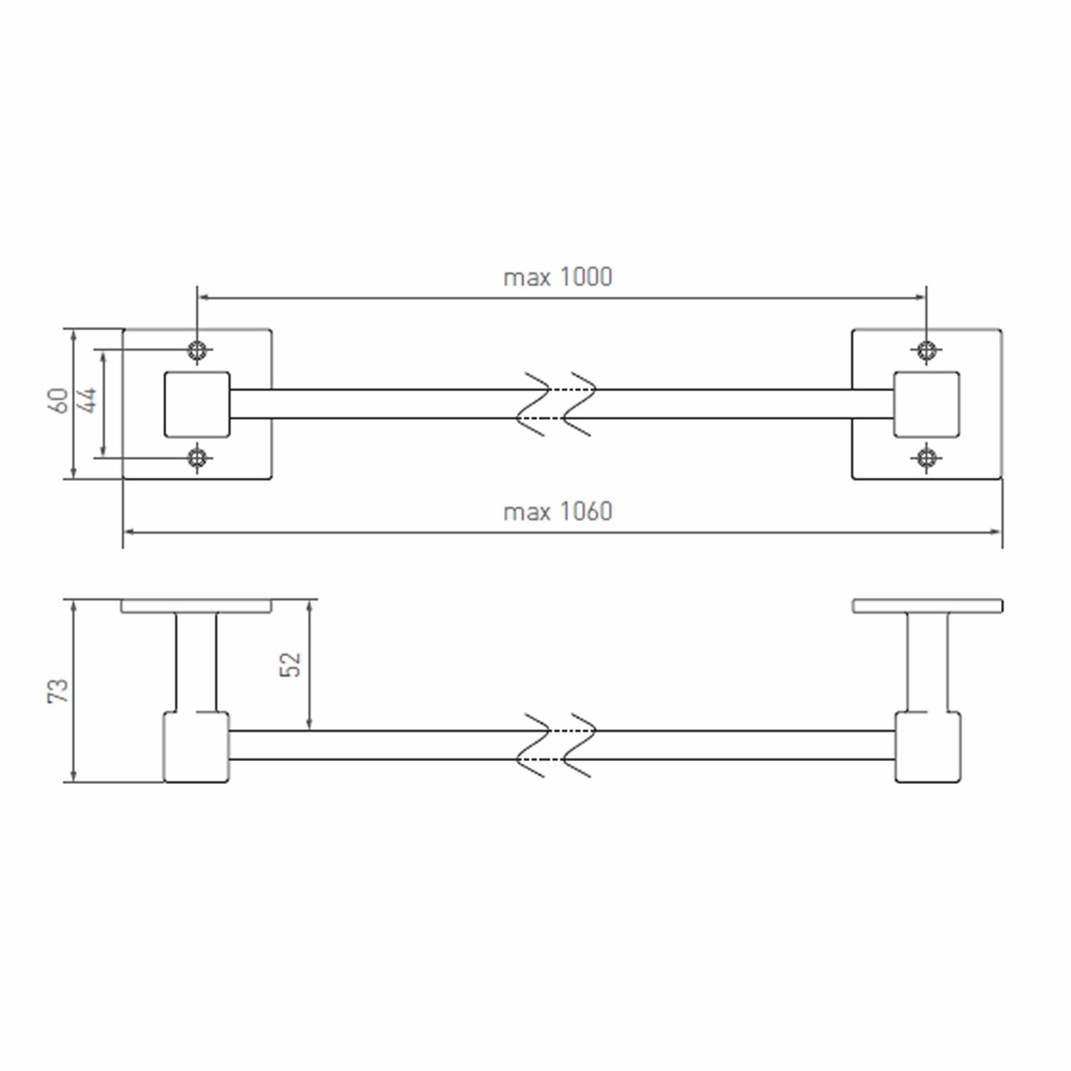 Strakke lange stang met twee steunen op een vierkant rozet om je handdoek makkelijk op te hangen. Is de stang in gepolijst ruw brons (RBP) van 1000 mm te lang dan kan deze makkelijk ingekort worden. Ook kan je aan deze stang open of dichte haken bevestigen voor extra comfort.