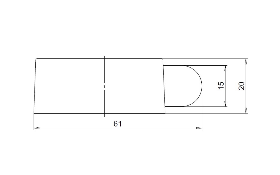 De buitenbehuizing heeft volgende afmetingen 51x21mm. Het rubberen stootgedeelte bestaat uit een massieve blok waarvan slechts 25x13mm (bxh) uit de vloerdeurstopper komt.