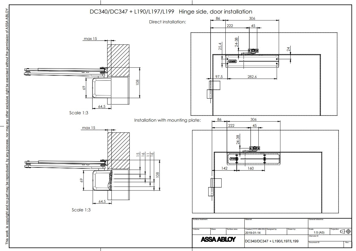 • Geschikt voor montage met onzichtbare vlakke montageplaat, geschikt voor rook- en brandwerende deuren