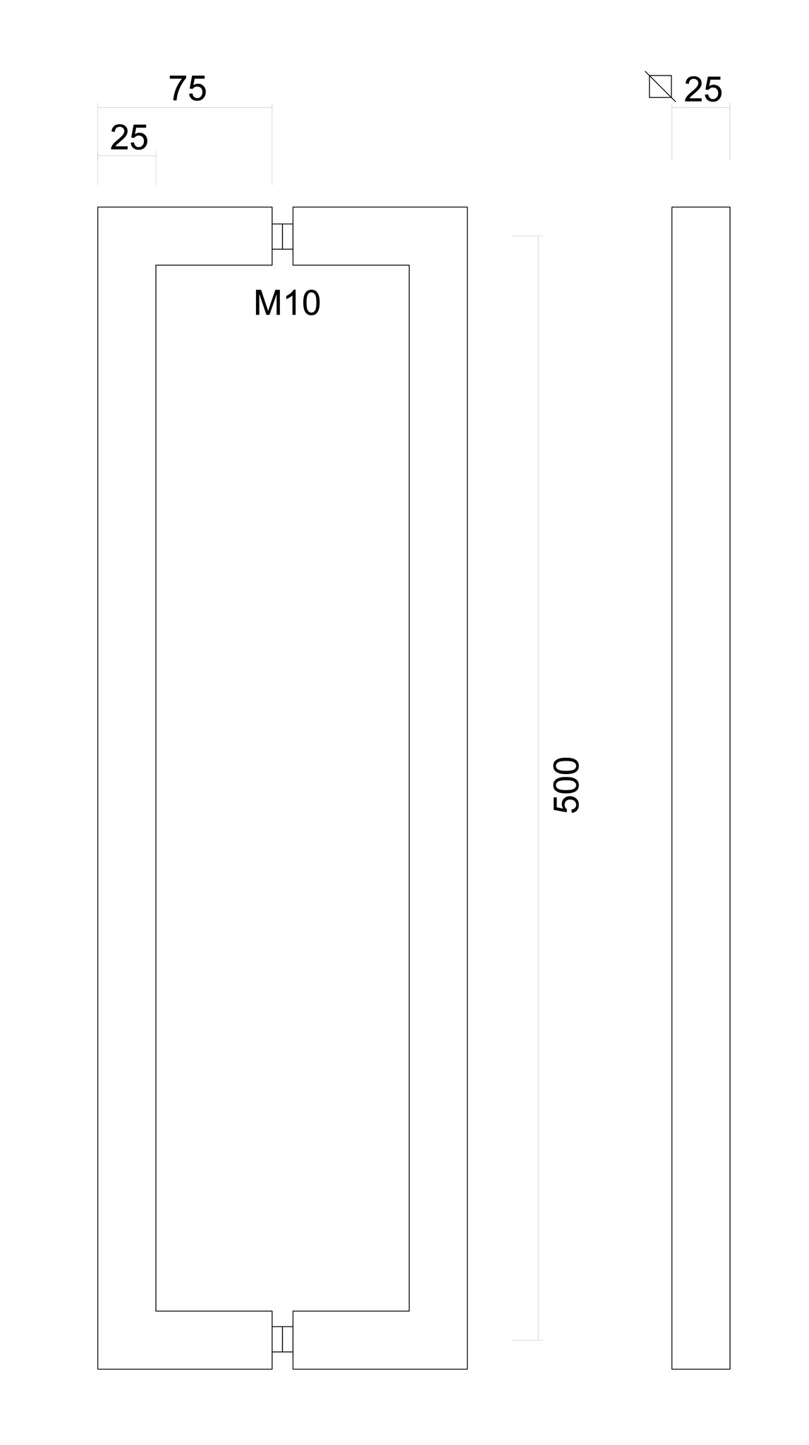 Beschrijving Vierkante RVS deurgrepen als paar geleverd voor glazen binnen en buiten deuren met een asmaat van 500 mm.
