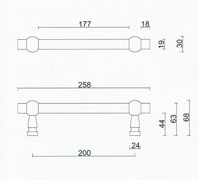 Deze "Old Silver" deurgrepen met een wat oudere look zijn zeer mooi om ook uw deuren een klassiek tintje te geven. De diameter van het handvat is 19 mm en de asmaat van de bevestiging is 200 mm. De totale lengte van deze landelijke deurgreep is 258 mm.