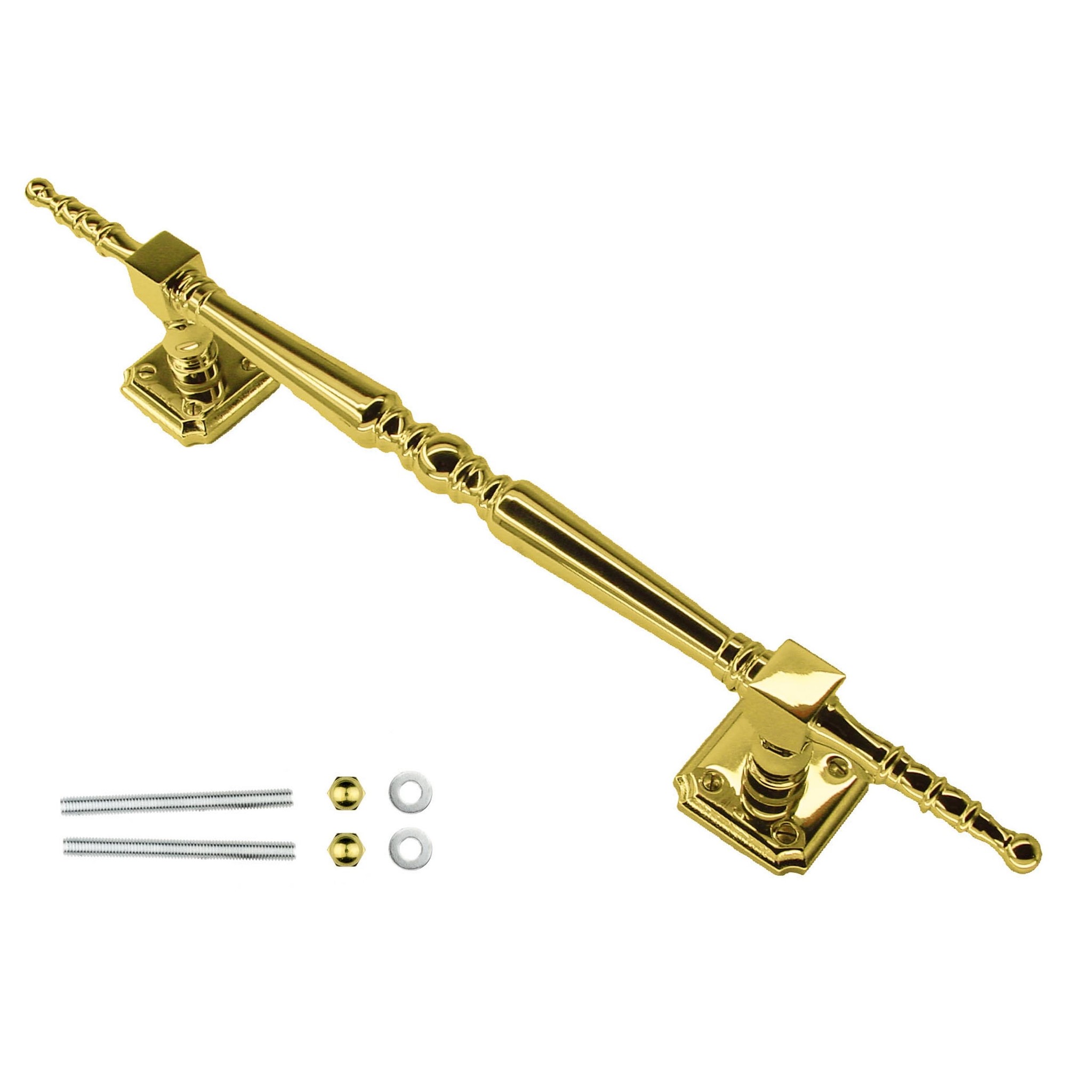 Deurgreep in goudkleur met een klassiek karakter. De massieve deurgreep heeft een totale lengte van 418 mm en de hart-op-hart maat is 260 mm.