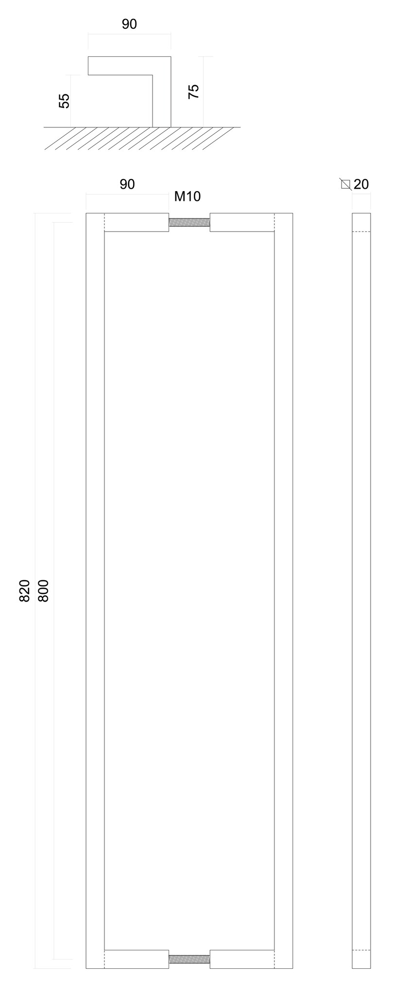 Deurgreep SQUARE D 20/800mm - RVS - paar voor deurdikte >3 CM