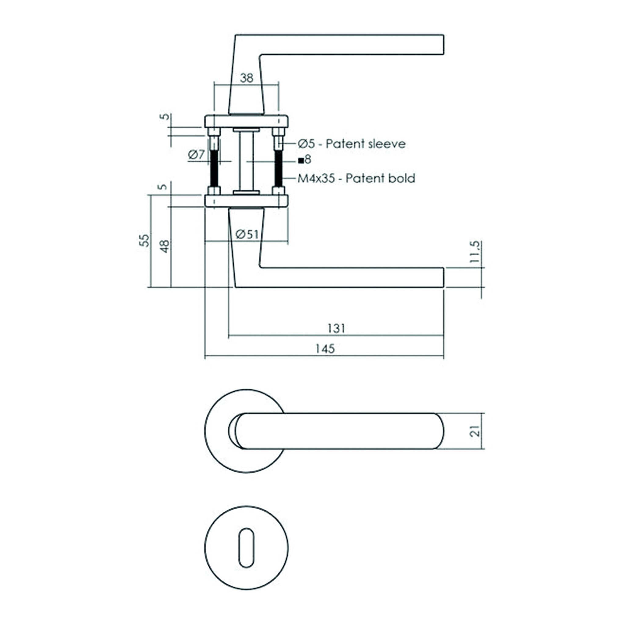 Kenmerkend voor het design van deze klink is de stijlvolle ronde vormgeving. Het geveerde rozet heeft een afmeting van Ø 51 mm, komt 5 mm naar voor en is voorzien van een kunststof onderconstructie met nokken waardoor de deurkruk beter op zijn plek wordt gehouden.