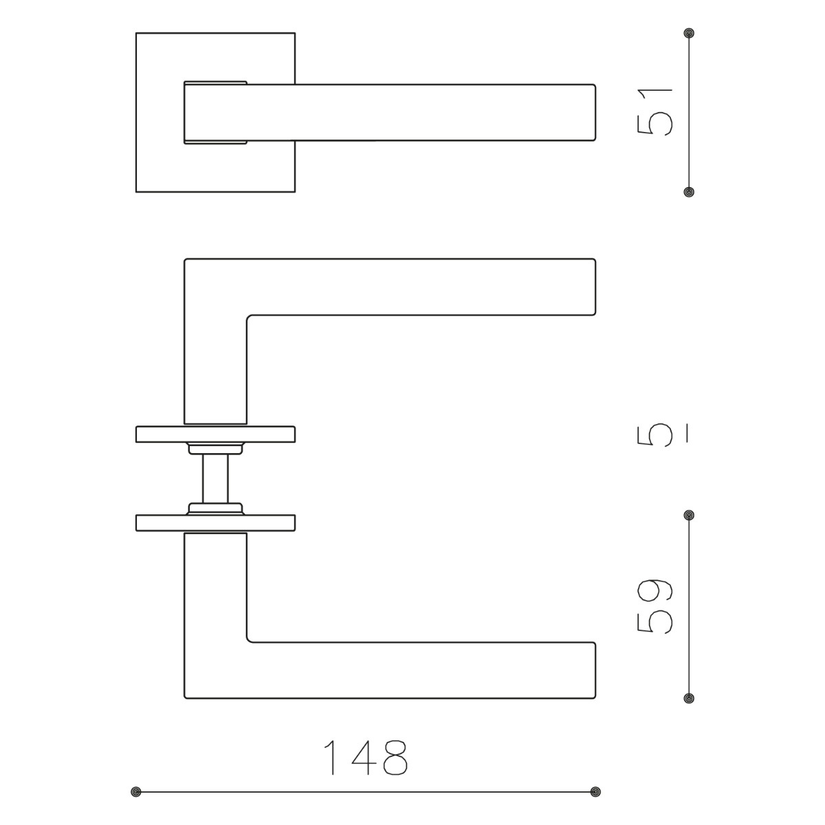 Beschrijving Olivari geveerde deurklink ABC op een vierkant rozet uitgevoerd in antraciet mat titaan PVD