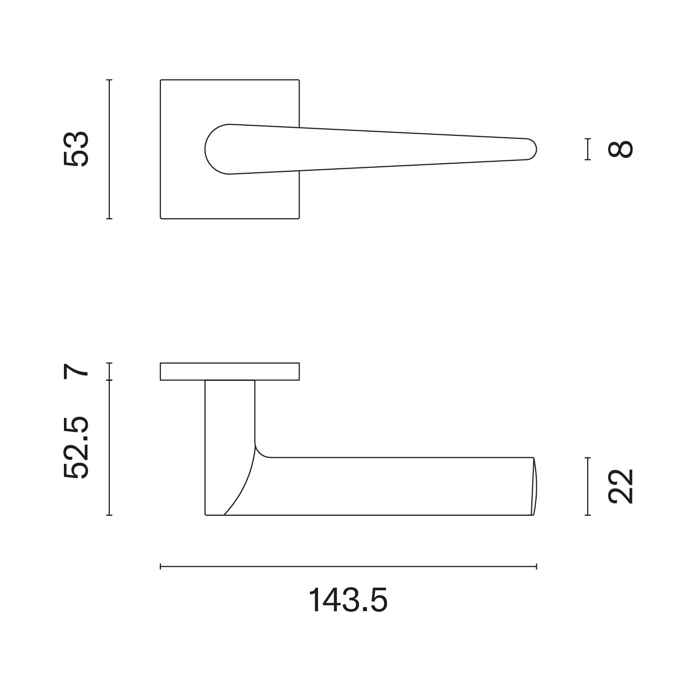 Beschrijving Massieve Aprile deurklinken Arnica op vierkante rozetten 53x53x7mm Chroom gepolijst