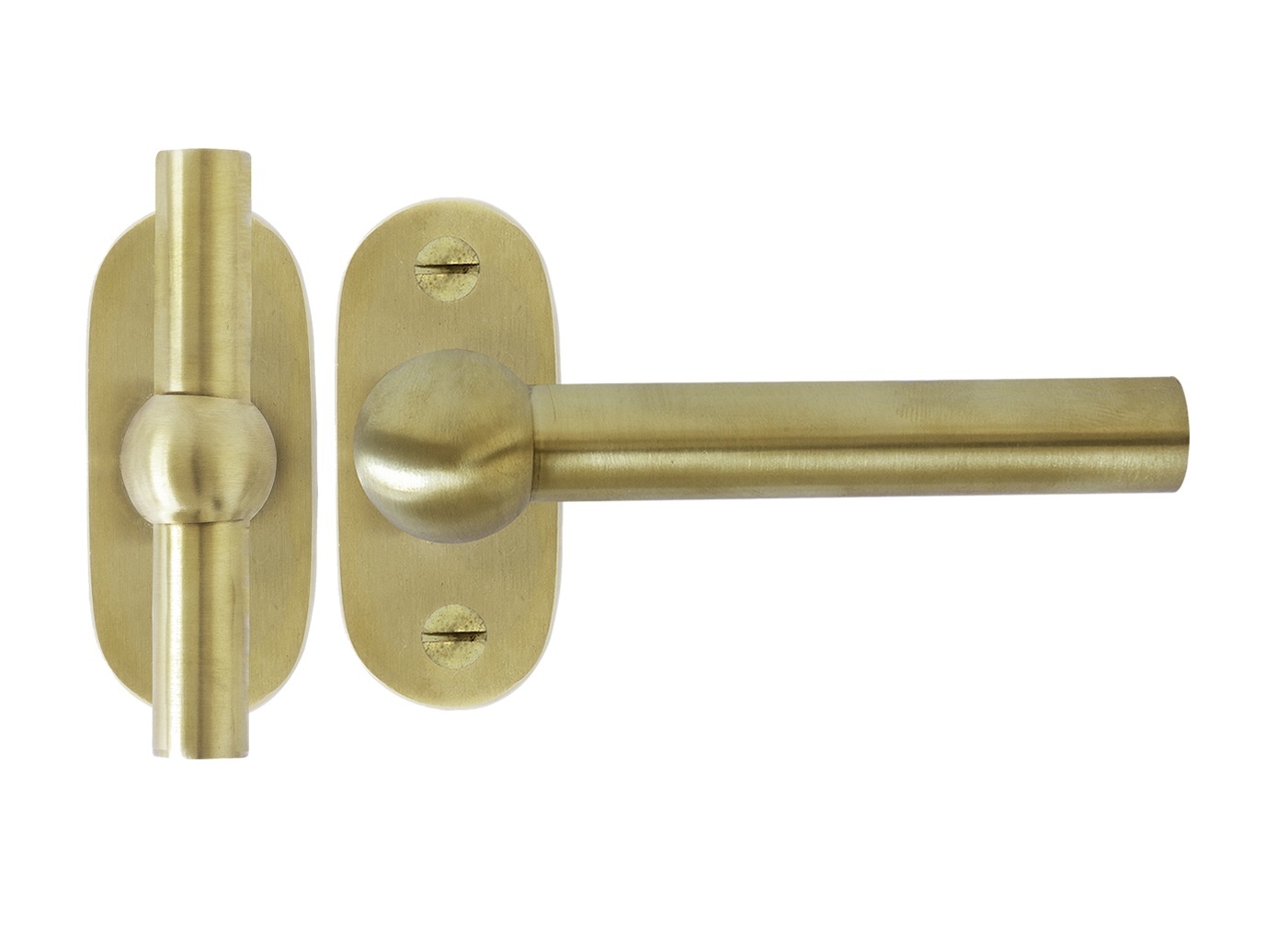 Deze T+L vormige deurklinken met bolvormige knoop uit de CDL (Créations de Laiton) collectie van Dauby staan op een ovaal rozet van 68x28mm met een dikte van 6 mm. De schroefgaten zijn reeds voorzien in het rozet en staan op een asaftand van 43 mm.