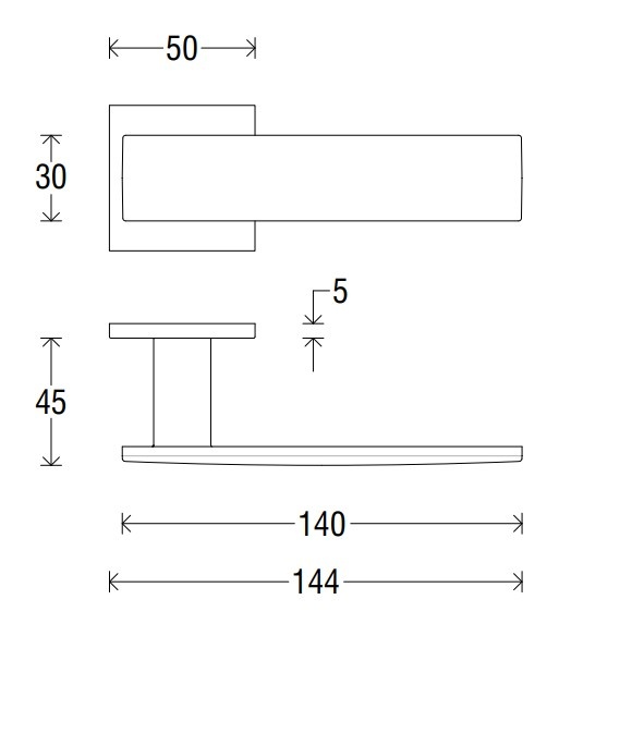Beschrijving Paar massieve deurklinken CORONA op vierkante rozetten van 50x50x5 mm uitgevoerd in mat goud