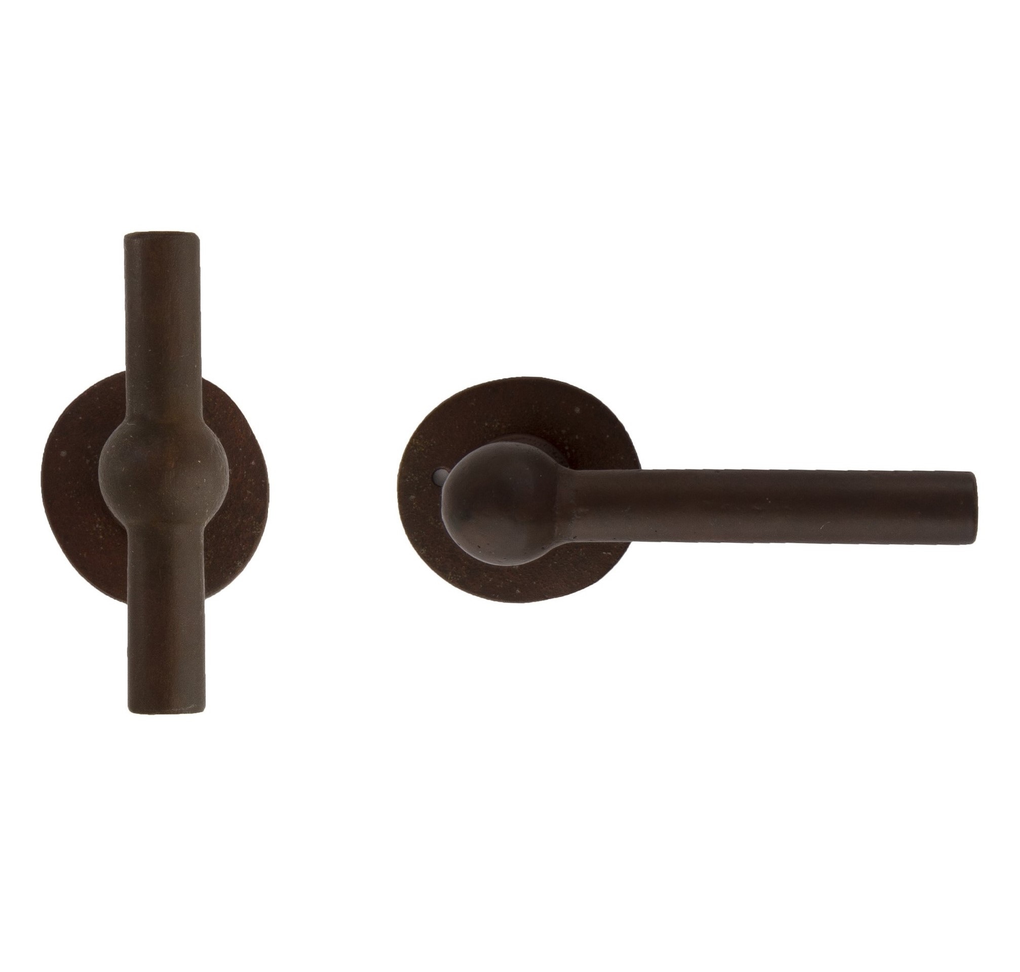 Paar gietijzeren CDF deurklinken BECDF "T+L" - Roest (RC)