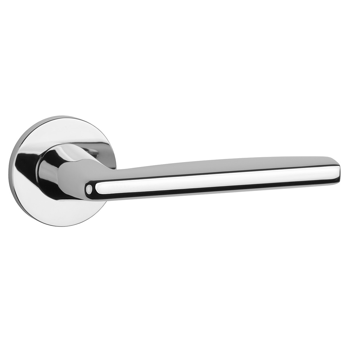 Beschrijving Massieve Chroom gepolijste deurklinken Luna op ronde rozetten van Ø 53x7mm