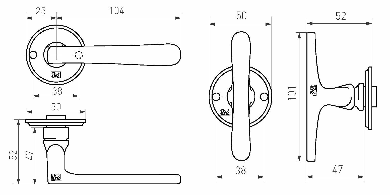 Bij dit artikel bestaat een paar uit een T en een L vorm die beiden op een rond rozet van 50mm staan. Het "T" model geeft aan dat je moet trekken. Het ontwerp PhTL "T+L" van Pure® heeft dit historische model in een nieuw kleedje gestoken met een meer speelse maar tegelijk krachtige vorm.