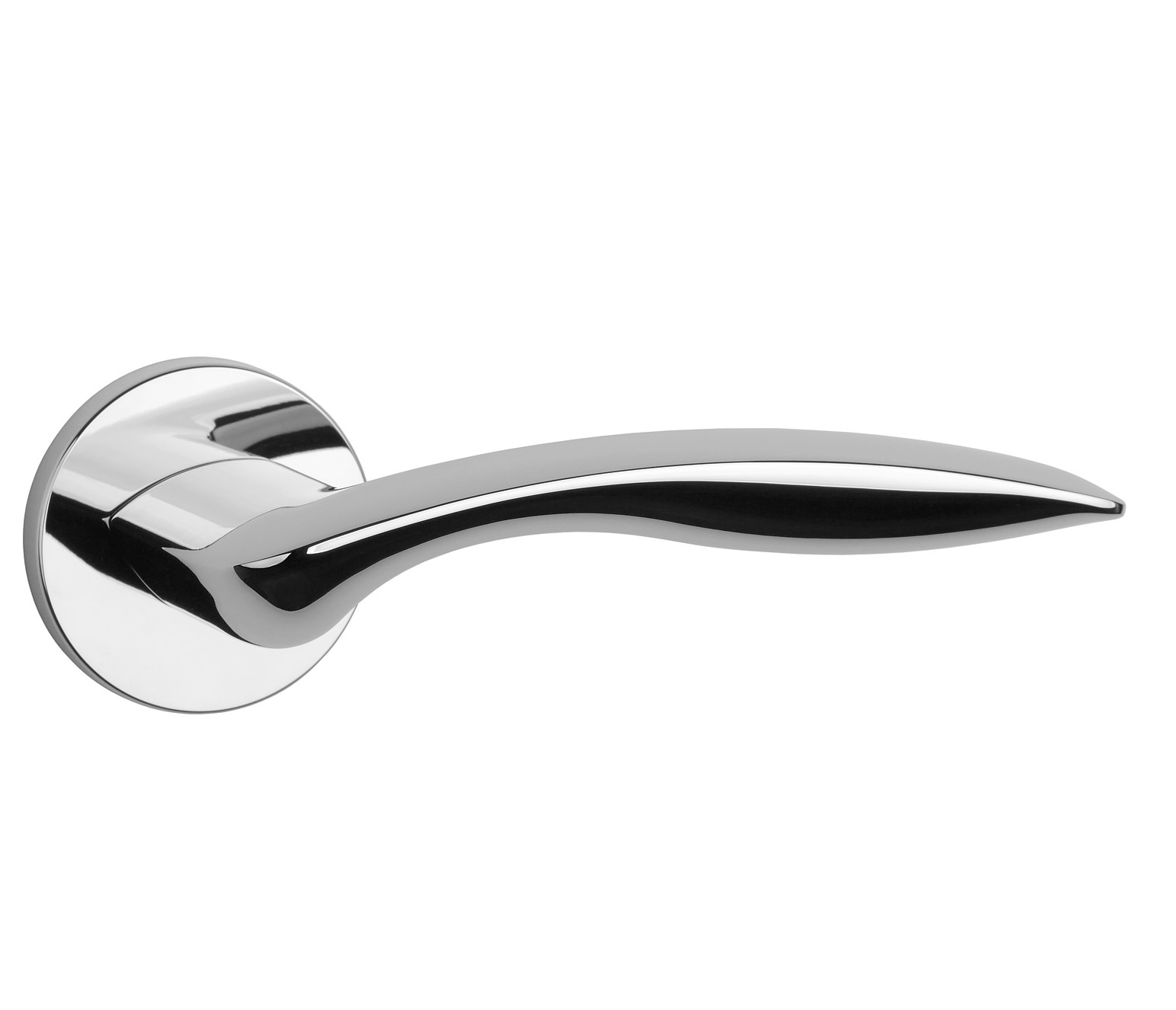 Beschrijving Massieve deurklinken ROBINIA in gepolijst Chroom op ronde rozetten Ø 52x7 mm van Aprile