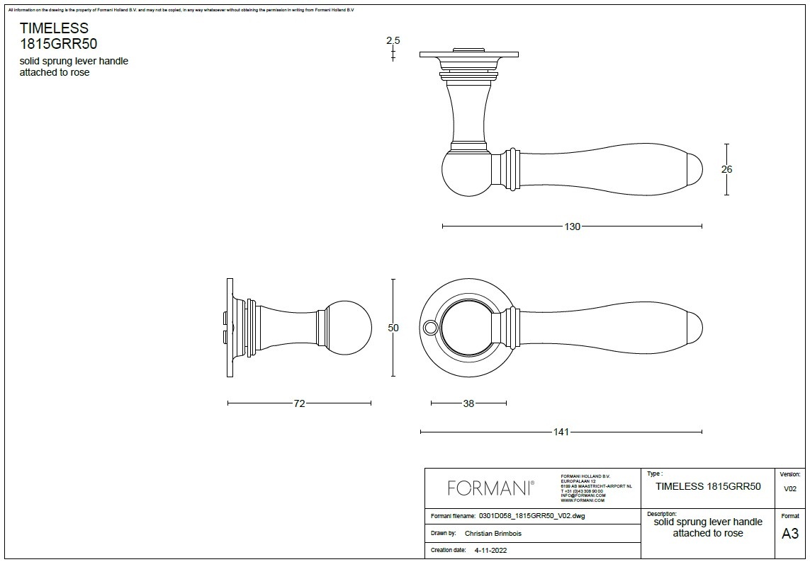 De Formani 1815GRR50 is een elegante deurkruk uit de Timeless-collectie, die klassieke charme combineert met moderne kwaliteit.
