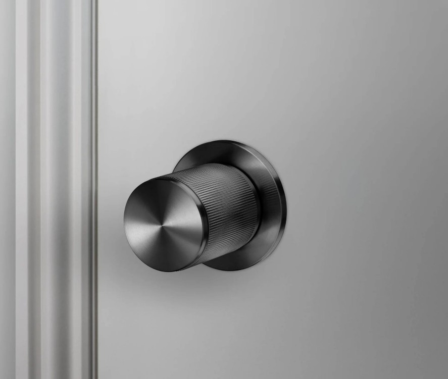 De zwarte deurknoppen zijn draaibaar en functioneren zoals een deurklink. Ze hebben een ∅ van 40mm (i.p.v. 50mm bij de cross). De rozetten met een dikte van 4mm kunnen door-en-door bevestigd worden en hebben een diameter van 57mm. Doordat de rozetten even groot zijn en de handvaten iets kleiner, ogen deze rozetten groter als bij de 'Cross' serie.