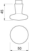 De deurknoppen zijn geschikt voor binnendeuren met een dikte van 38-45 mm. De deurknoppen hebben een diameter van 50 mm en komen 45 mm naar voor.