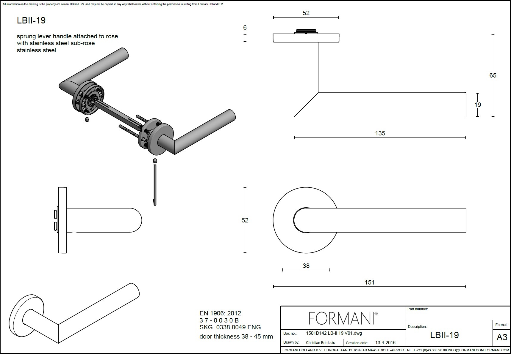 De rozetten hebben een diameter van 52mm en zijn slechts 6mm dik. De lengte van de handvaten bedraagt 135mm. Meer afmetingen vindt u op de technische tekening.