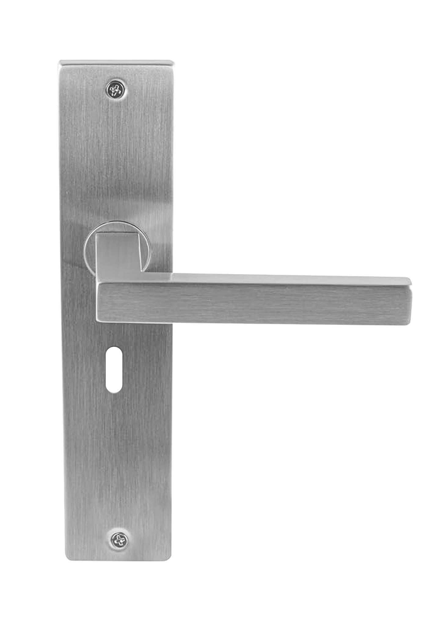 Dit model is leverbaar in een blinde versie, sleutelversie (asmaat 56mm), cilinderversie (55mm) en een schild met wc garnituur (63/8mm).