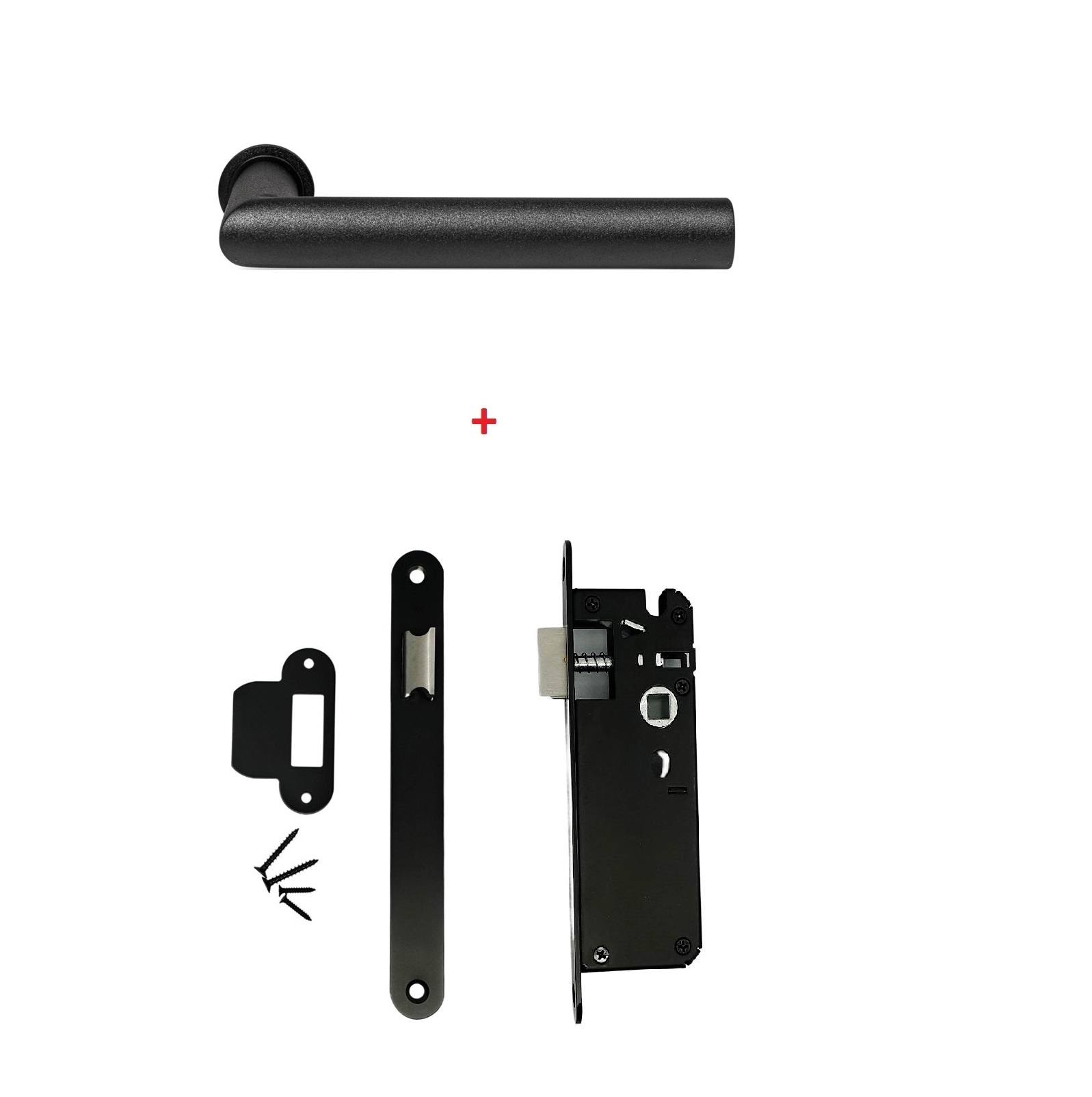 Beschrijving Zwarte deurkrukken met minimalistische ronde rozetten voorzien van een mat zwarte structuurlak in combinatie met een zwart smalslot