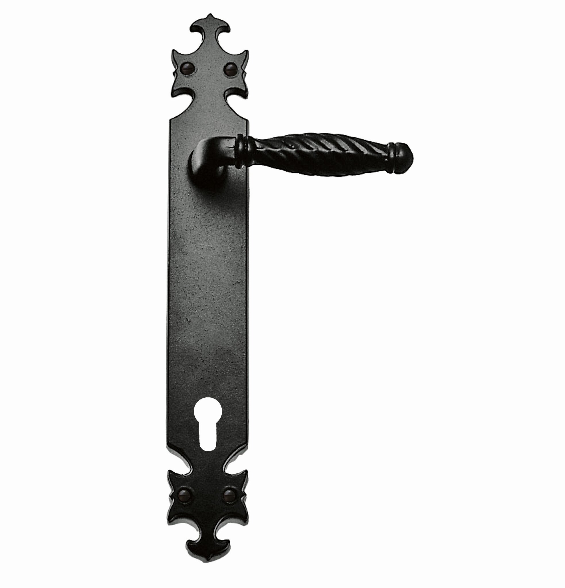 De deurklinken worden geleverd op een rustiek schild per paar met of zonder sleutelopening en zijn geschikt voor binnen deuren van 38-43 mm.