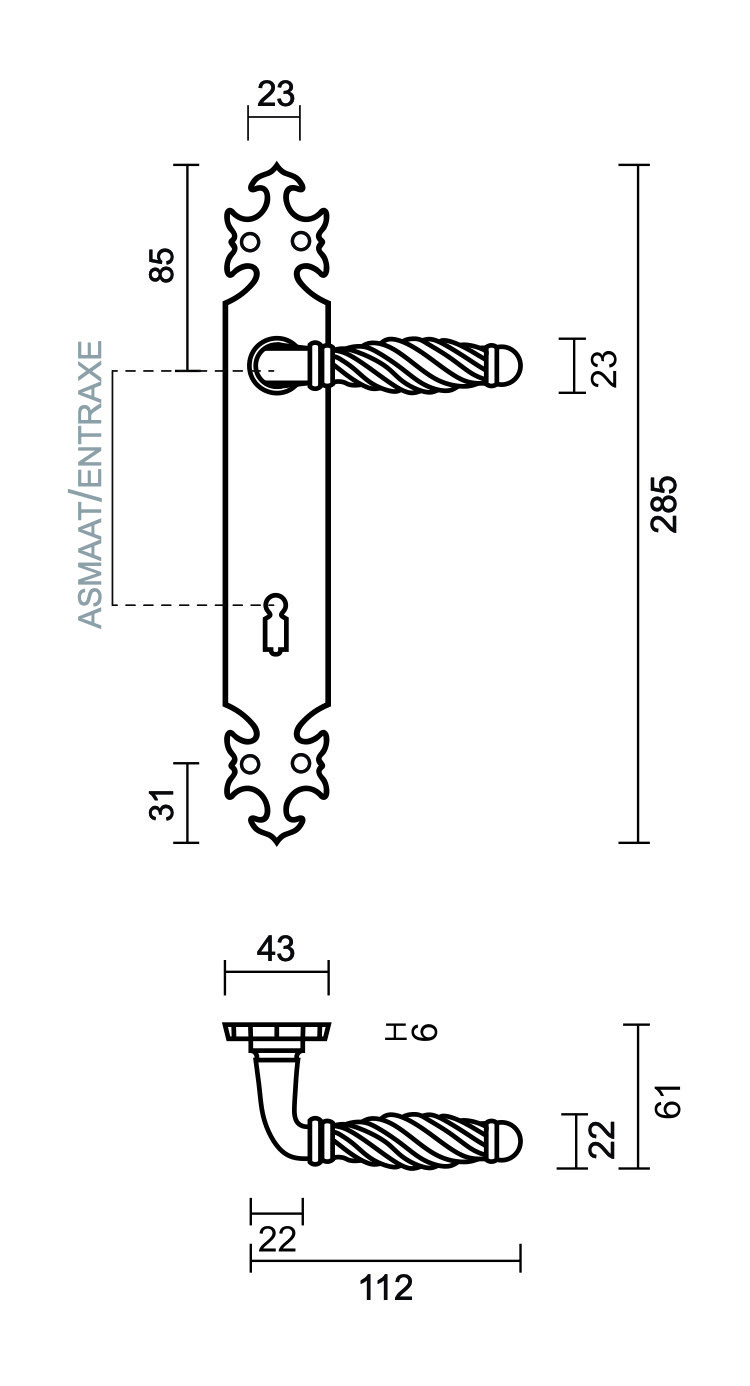 Let op!! Alleen de deurklinken met een sleutelopening op 110 mm zijn snel leverbaar, de andere uitvoeringen worden geproduceerd op bestelling en hebben dan ook een levertijd van 5 weken!!