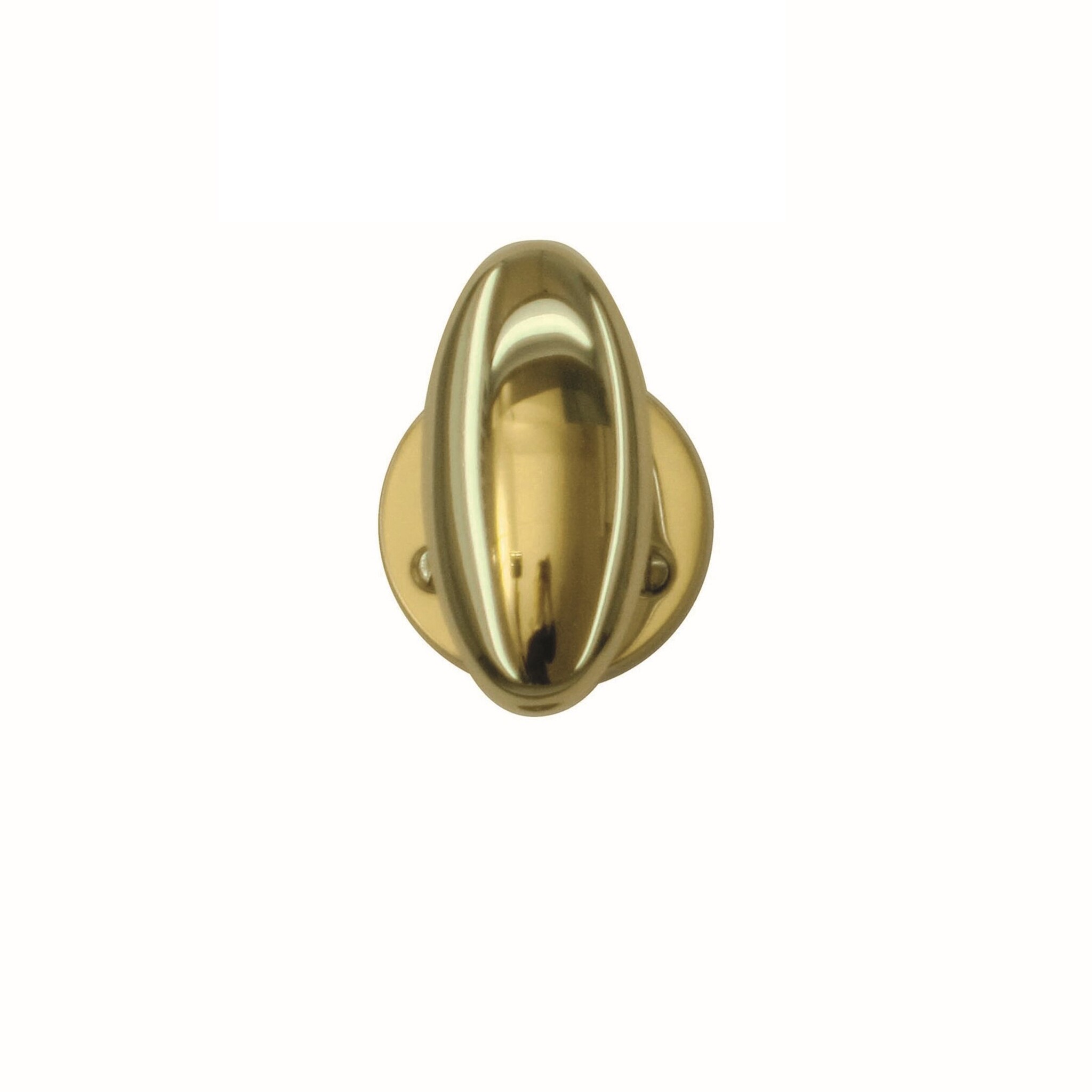 Deze gouden deurknop, die draaibaar is en functioneert als een deurklink, staat op een rond rozet van 44mm.