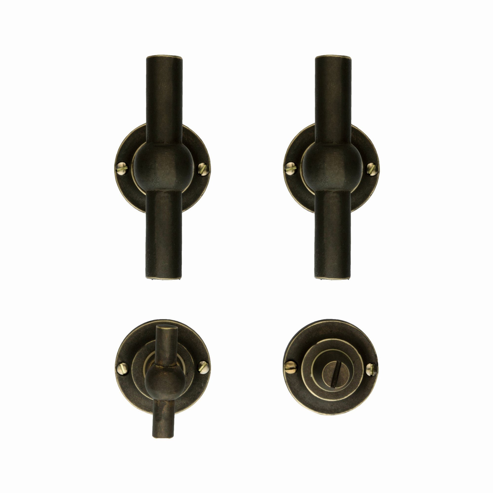 Beschrijving Deurkruk Petra met T+T combinatie in Old Brass leverbaar in 4 varianten