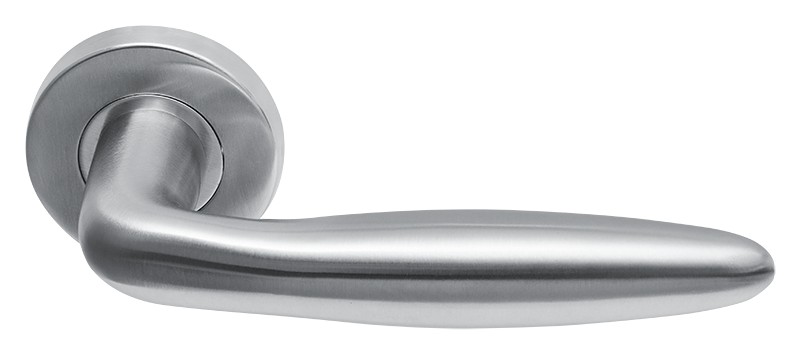 Beschrijving Massieve RVS deurkrukken Riga op rond rozet