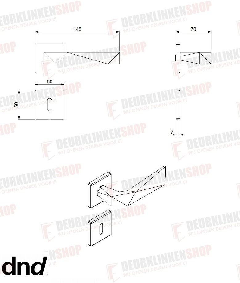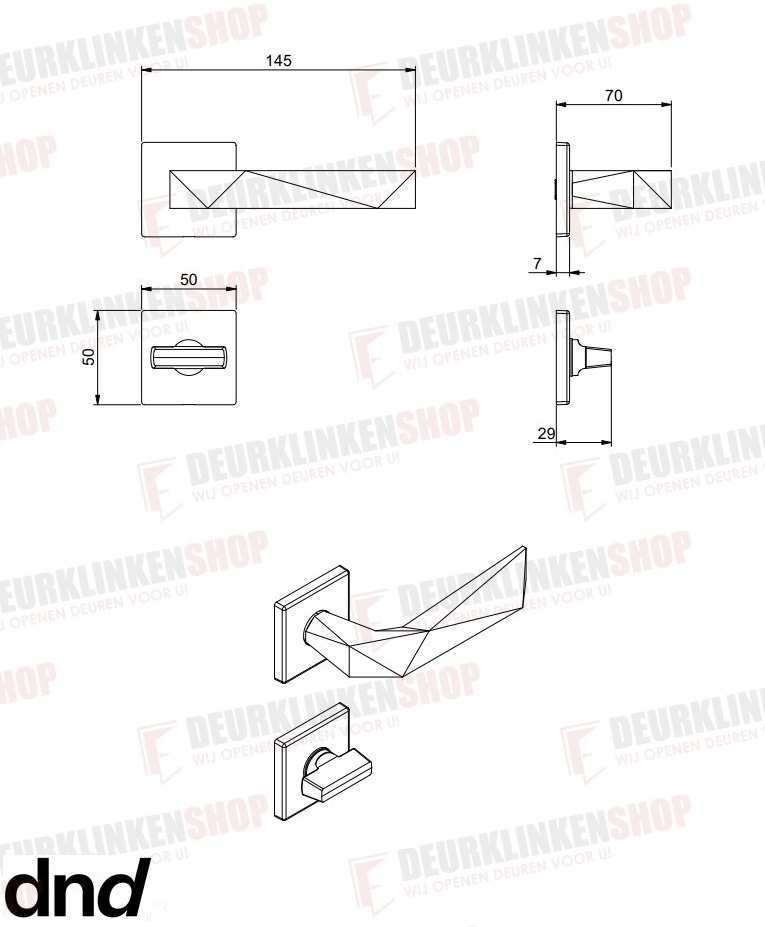 Deze exclusieve deurklinken staan op een vierkante geveerde rozetten (50x7mm) en zijn geschikt voor binnendeuren van 38-54mm.
