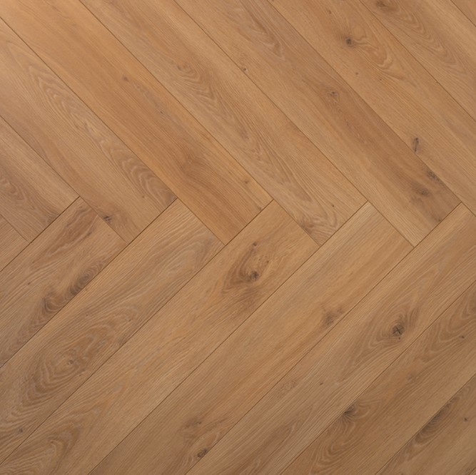 Beschrijving Elegant Solide laminaat - Visgraat motief Peterselie van Douwes Dekker. Vloeren met planken van 85 x 14 cm en een huishoudelijke garantie van maar liefst 25 jaar