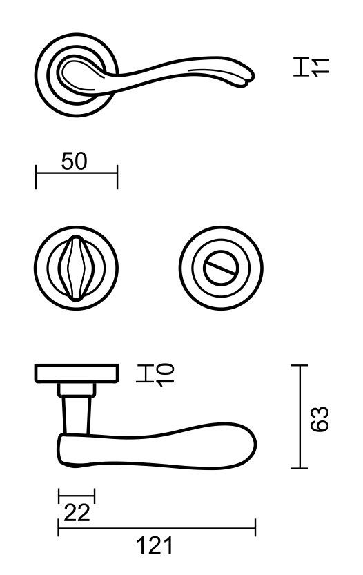 Beschrijving Klassieke zwarte gebogen deurklinken ERICA verkrijgbaar in 4 varianten