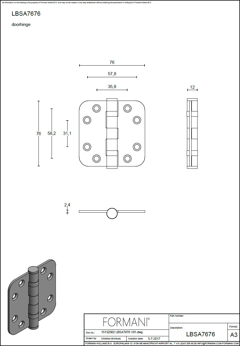 Beschrijving Formani kogellagerscharnier 76x76mm BASICS LBSA7676 afgeronde hoeken gepolijst RVS