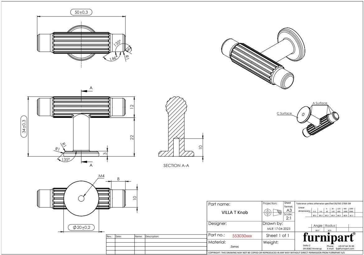 VILLA' van Furnipart is een T-vormige meubelknop geïnspireerd op de klassieke architectuur van Griekenland. Zuivere vormen, rechte lijnen, symmetrisch en harmonieus van opbouw.