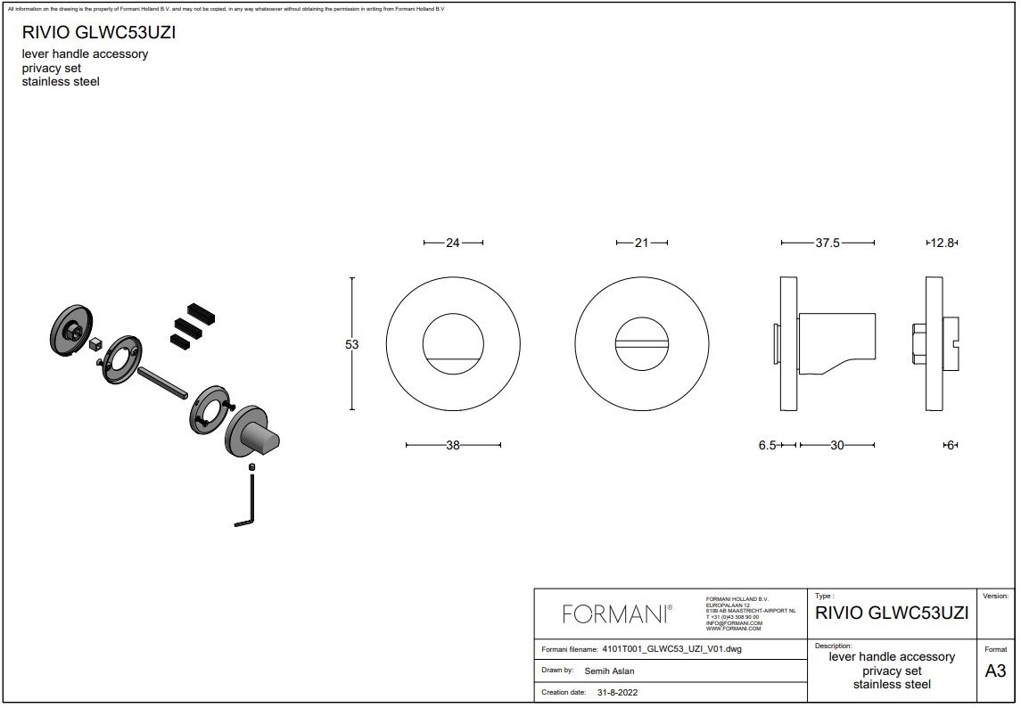 Beschrijving Rond WC garnituur GLWC53-ZI in mat RVS ontworpen door Gensler voor de RIVIO collectie van Formani zonder indicator