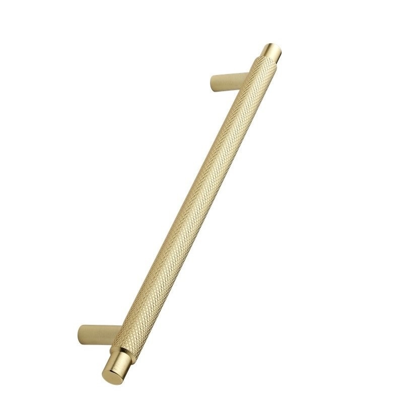 Beschrijving Goudkleurige U-vormige meubelgreep van Furnipart met ronde kruislings geslepen greep uit de MANOR collectie verkrijgbaar in 2 afmetingen
