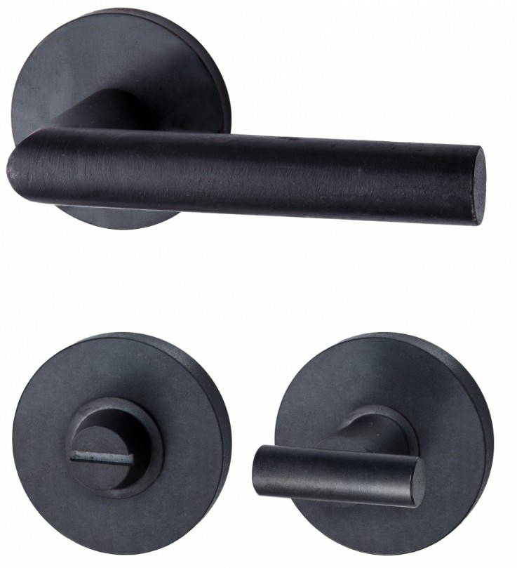 Beschrijving Deurklinken uit de stijlvolle "DAVOS" serie van Halcö, vervaardigd uit zwart massief gehard staal, gemonteerd op een rond rozet met verdekte schroeven.