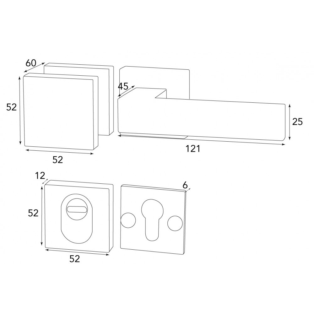 Afmetingen rozetten 52x52 mm